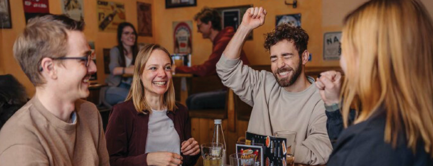 Feierabend und Lust auf einen entspannten Abend im Pub? Unser AK-Pubquiz bringt Freund:innen und Kolleg:innen nach der Arbeit zusammen. Egal ob Quiz-Profi oder zum ersten Mal dabei – hier geht’s nicht ums Besserwissen, sondern ums gemeinsame Rätseln, Lachen und Abschalten bei einem Drink.